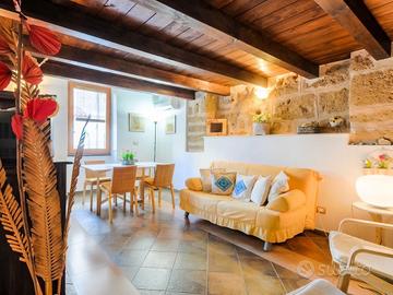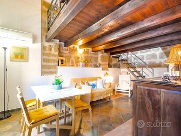 L'appartamento Emerald t é In CENTRO STORICO di ALGHERO a un passo dal MARE, dai BASTIONI e dallo scenario di Capo Caccia. Luminoso e caratteristico su due livelli, é composto da open space con WIFI, sala con divano letto doppio, due poltroncine, angolo pranzo e Tv, cucina attrezzata e corredata con lavatrice, lavastoviglie, microonde, macchina del caffè, ferro e asse da stiro, frigorifero, freezer, aria condizionata, bagno con doccia e servizi. Al secondo livello la camera matrimoniale, con armadio, cassettiera, tv, aria condizionata. Emerald , tra old town e mare, artigianato locale, ristoranti, caffé, conserva il fascino dei tempi antichi grazie ad una ristrutturazione non invasiva, che ha lasciato integri gli originari stili architettonici, come la pietra a vista e le travi di legno.