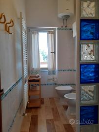 All'interno camera con un letto matrimoniale e uno singolo, bagno finestrato con doccia, ampia sala con angolo cottura, tavolo, sedie e divano letto, dotato di ogni comfort: biancheria, aria condizionata, lavastoviglie, lavatrice e tivù, pentole, stoviglie e microonde.