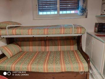 BILOCALE AMMOBILIATO 25 m ^ COMPOSTO DA SOGGIORNO CON ANGOLO COTTURA, CAMERA MATRIMONIALE SOPPALCATA, BAGNO. L'APPARTAMENTO E' DOTATO DI TV, FRIGO, LAVATRICE, PHON, MICROONDE, POMPA DI CALORE/CONDIZIONATORE, POSTEGGIO CONDOMINIALE. POSTI LETTO N. 5 (1 LETTO MATRIMONIALE PIU' DIVANO LETTO 3 POSTI), ESSENDO DISPOSTO SU 2 LIVELLI CON SCALA MUGNAIO, E PREFERIBILMENTE ABITABILE DA PERSONE ATLETICHE E ABITUATE A SPAZI RIDOTTI. SPIAGGIA, PASSEGGIATA MARE, SUPERMERCATO A MENO DI 50 METRI DALL'APPARTAMENTO.
