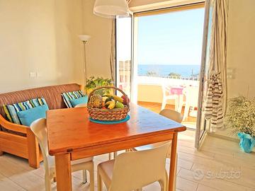 L'appartamento è dotato di un ampio BALCONE (circa 20 mq) esposto a SUD con parziale VISTA MARE su cui è possibile pranzare e cenare, grazie alle presenza di sedie e tavolo da esterno.