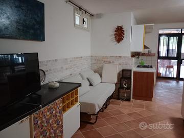 A San Giovanni Suergiu, pochi chilometri dalle spiagge di Sant'Antioco e del Sud Sardegna, bilocale parzialmente seminterrato ma molto luminoso con giardino, barbecue, pista ciclabile nelle immediate vicinanze.