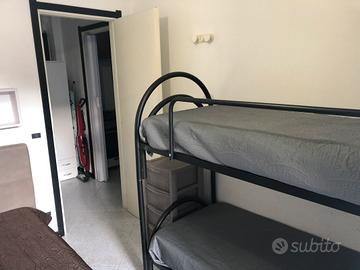 bilocale zona centralissima a circa 200 m dal mare ,camera con letto matrimoniale e un letto a castello ,,ampio terrazzo su due lati bagno con doccia ,soggiorno / cucina con divano letto matrimoniale ..aria condizionata microonde macchina caffè tv forno , tutto x la cucina