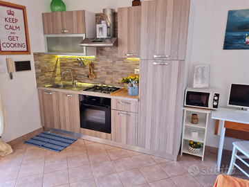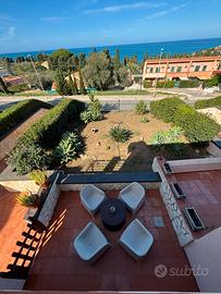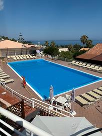 All'interno di un Residence con piscina vista mare - presente in contrada S. LUCIA di fronte al noto Club Med e all 'Hotel Santa Lucia Le Sabbie d'oro, privato affitta (per settimane o max mese) bivani arredato e corredato ( ideale per famiglie con bambini massimo 4 ospiti) con due impianti di aria condizionata collocati uno all' interno della stanza da letto l'altro all'interno della cucina soggiorno. La struttura presenta due terrazze esterne con giardino annesso di cui una anch'essa con vista mare di fronte le isole da dove si possono immortalare tramonti inenarrabili (come da foto su esposta) e l'altra con esposizione interna. L'immobile presenta una stanza da letto con letto matrimoniale oltre ad un ampio soggiorno con cucina completa in ogni sua parte (come da foto) con un divano letto anch'esso con letto matrimoniale. A pochi passi dal Residence sono presenti un grande supermercato MD oltre bar pizzerie e ristoranti. A 1 km circa dall'Ospedale Giglio di Cefalu. Sotto il Residence vi è una fermata bus navetta per Cefalu Centro e Giglio Ospedale . Vicino al Residence si scende in spiaggia e sul litorale cefaludese. Si evidenzia che al check in è richiesto un somma di euro 200 a titolo di deposito cauzionale che verrà riconsegnato il giorno del check out previa constatazione delle condizioni della struttura, PERIODO MINIMO DI AFFITTO 5 GIORNI . Per maggiori informazioni su disponibilità chiamare il 333 1748080.
