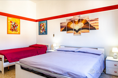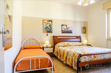 L'appartamento può ospitare fino ad 8 persone ed è composto da: Ampio disimpegno in ingresso, cucina con balcone, n.2 camere triple n. 1 soggiorno/camera doppia con balcone abitabile, bagno con doccia.