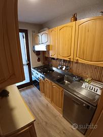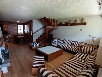 Piano terra: ampio soggiorno open space con zona living e zona pranzo, cucinotto completamente attrezzato e balcone panoramico con splendida vista sulle montagne.