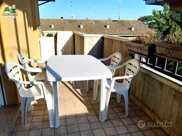 A mt.600 da mare e Pineta. Appartamento n.104, Pinarella di Cervia, sviluppato su due livelli nel Condominio I Giardinetti. Al secondo piano sala da pranzo con terrazzo, due camere da letto (3 posti letto) ed il bagno. Al piano mansardato due camere da letto (4 posti letto) e bagno. L'immobile è dotato di lavatrice, lavastoviglie, tv e climatizzatore. Ascensore. Al piano interrato posto auto riservato e ripostiglio privato. CIR:039007-CV-00074 CIN:IT039007B48VDES6R3