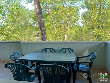 A mt.300 dal mare e pineta. Appartamento n° 73, a Zadina di Cesenatico, al II piano nella palazzina Smeralda composto da sala da pranzo (2 posti letto), cucinotto, 2 camere da letto (5 posti letto), bagno e terrazzi. L' appartamento è dotato di lavatrice e tv. Posto auto condominiale. Classe energetica G. CIR:040008-CV-00042 CIN:IT040008B4DOTA2G2J.
