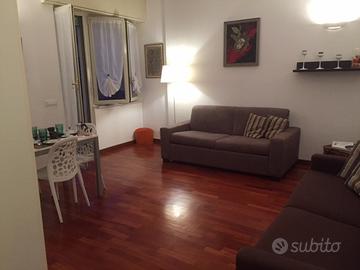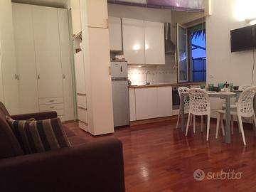 Nella strada principale di Nervi ampio monolocale di 45mq zona leaving con divano letto (max 4 posti) bagno con doccia grande terrazza attrezzata con tavolo divanetto e barbecue,. Dotato di lavatrice, smart tv, netflix, wifi porta blindata. parcheggio privato. si fornisce biancheria da bagno, letto, cucina. Dall appartamento si raggiunge la passeggiata a mare .affitto minimo 2 notti