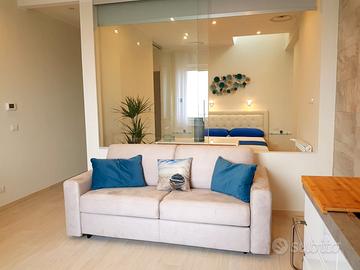 APPARTAMENTO ANEMONE dotato di ampia finestra con vista sul mare, camera da letto dalla quale si vede il mare di Taormina, attraverso la grande vetrata, dotata di tenda oscurante; un soggiorno con comodo divano letto per due persone , moderna cucina con forno, stoviglie varie , bollitore, macchina del caffè, tostapane, tavolo in cristallo estensibile max 4 persone.