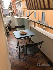 Soggiorno cucina 2 camere letto bagno e balcone vista mare e piazza Pia.