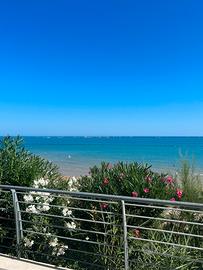 Affascinante appartamento di 85m2 con accesso diretto alla spiaggia e ampio terrazzo privato. Due camere da letto, soggiorno, bagno e cucina completamente attrezzata. Posti letto per 5 persone.Parcheggio privato in condominio recintato. Animali domestici ben accettati. Situato a Termoli nord, a 5 minuti dal centro. Affitto settimanale. Contatta Elena al 3661021488 per info e prenotazioni. Non perdere questa opportunità!