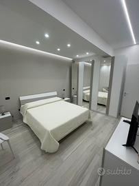 una camera da letto matrimoniale e divano letto