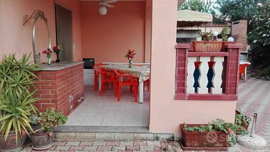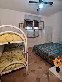 Due camere matrimoniali con un letto a castello per ogni camera. Cucina arredata e bagno completo. All'esterno altra veranda con spazio alberato. Barbeque e doppio servizio in comune completo di doccia. Nel COSTO E' COMPRESO il consumo di acqua H 24, energia, gas, uso della lavatrice e parcheggio auto.