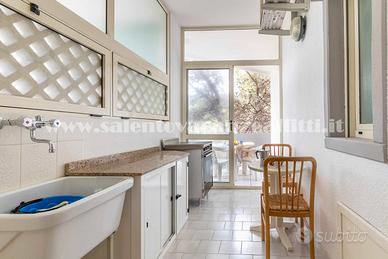 Grazioso e luminoso bilocale sito in via Libra snc. al 2° piano con ascensore del Residence Pineta mare di Rivabella, con posto auto libero in strada, nella rinomata zona di Rivabella in centro a 50m dalla spiaggia libera e attrezzata e dallo scoglio, circondata da una fitta pineta verde che si vede anche dal balconcino vista mare, in zona centralissima servita da negozi alimentari, caseificio e bar. Ad 1km dal Parco acquatico Splash per portare i vs bambini in una giornata di puro divertimento e sempre a 1km troverete il grande supermercato FAMILA. Il centro di Gallipoli lo si trova esattamente a 2,5km dalla zona. LA ZONA NEI DINTORNI: Rivabella è una frazione a nord di Gallipoli, un polmone verde di aria pulita, lontano dal caos del centro di Gallipoli dal quale dista solo 2 km e che ne fa una località balneare molto richiesta per via della tranquillità che garantisce alle famiglie, situata tra Gallipoli e Lido Conchiglie, abitata prevalentemente d'estate, dove vi sono anche molti alberghi e il piccolo centro ospita da circa 15 anni una piccola cittadella commerciale estiva ,a di piccole dimensioni. A pochi km avrete poi le graziose località di S. Maria al Bagno e S. Caterina, che hanno un lungomare che regala passeggiate sul mare in relax.. 45km da Lecce, 50km da Otranto e 50km da Santa Maria di Leuca. Il centro di Gallipoli con il suo Corso Roma costellato di negozi e locali di intrattenimento è a circa 2 km e la parte storica della cittadella a circa 3km, necessario per cui l'uso dell'auto per raggiungerle. DESCRIZIONE APPARTAMENTO: Bilo di circa 55mq, adatto sia ad una coppia con o senza bimbi, ma anche per due coppie poichè all'occorrenza, avendo la particolarità di avere accesso nel tinello dal balcone della camera matrimoniale, ciò non inficia sulla riservatezza di chi dorme in cucina nel divano letto. E' composto da un terrazzino per mangiare all'aperto con vista alla pineta che dà accesso alla spiaggia e quindi sul mare. CIN: IT075031C200078553