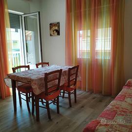 PRIVATO AFFITTA Ampio appartamento situato al 1^piano e composto da soggiorno con divano letto matrimoniale, cucina, ampio terrazzo attrezzato con tavolo e sedie dove si può pranzare, una camera matrimoniale con piccolo bagno in camera, II^ camera matrimoniale, cameretta con letto a castello, bagno nuovo con box doccia e lavatrice. Cl. Energetica F. L'app.to è dotato di TV, aria condizionata, lavatrice, wifi, posto auto privato. Posto spiaggia (1 ombrellone e 2 lettini al comparto L 1) incluso.