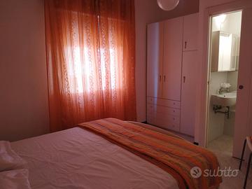 PRIVATO AFFITTA Ampio appartamento situato al 1^piano e composto da soggiorno con divano letto matrimoniale, cucina, ampio terrazzo attrezzato con tavolo e sedie dove si può pranzare, una camera matrimoniale con piccolo bagno in camera, II^ camera matrimoniale, cameretta con letto a castello, bagno nuovo con box doccia e lavatrice. Cl. Energetica F. L'app.to è dotato di TV, aria condizionata, lavatrice, wifi, posto auto privato. Posto spiaggia (1 ombrellone e 2 lettini al comparto L 1) incluso.