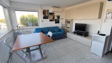 Appartamento a 200 metri dal mare nella zona sud di San Benedetto del Tronto, zona residenziale e ben servita. L'appartamento è composto da una camera con letto matrimoniale, soggiorno con angolo cottura e divano letto matrimoniale, bagno con doccia, ampio terrazzo con vista panoramica attrezzato con lettini, tavolo e sedie, doccia e tenda solare. Tv, Lavatrice, Forno, Lavastoviglie, lettore DVD e consolle Wii, internet Wi-Fi. Aria condizionata (a supplemento) 3° piano con ascensore. Codice Regionale (CIR): 044066-LOC-00818 - Codice Nazionale (CIN): IT044066C2NS39NQ6X