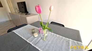 Appartamento accogliente e ben arredato, situato a soli 250 metri dal mare, in una palazzina tranquilla nella zona residenziale di San Benedetto del Tronto. L'alloggio è composto da una camera da letto matrimoniale, una camera con due letti a castello, un soggiorno luminoso con divano letto matrimoniale e cucina attrezzata con forno, frigorifero e freezer. Dotato di bagno con doccia, a disposizione un ripostiglio di 13 mq, TV, lavatrice, ferro e asse da stiro e phon. Balcone con tavolino e sedie. Posto auto nel cortile condominiale recintato compreso nel prezzo.