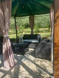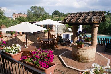 sdraio per prendere il sole. Completa la proprietà un giardino con area relax con gazebo dove godersi un aperitivo dopo una giornata alla scoperta delle bellezze di Siena e provincia, piccolo parco giochi per far divertire i bambini e barbecue per grigliate in compagnia.