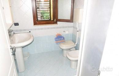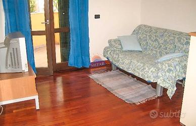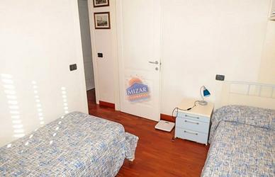 Affittiamo spazioso trilocale situato al primo piano (accesso tramite scala), in una posizione comoda e tranquilla (a circa 500 metri dal mare e a due passi dal centro storico). L'appartamento è composto da: Luminoso soggiorno/pranzo con divano letto matrimoniale e TV; Angolo cottura attrezzato con lavastoviglie; Camera matrimoniale con balcone; Cameretta con due letti singoli; Bagno con box doccia; Ampia terrazza attrezzata con tavolo e sedie, ideale per pranzi e cene all'aperto. Dotato di aria condizionata (utilizzo facoltativo, con supplemento). A disposizione degli ospiti, nel piano seminterrato, locale lavanderia ad uso esclusivo con lavatrice, lavatoio e ulteriore box doccia.