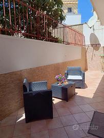 L'appartamento ha un ingresso indipendente al piano terra, due camere da letto, un bagno completo, cucina, soggiorno, cortile esterno con lavello e doccia da utilizzare al rientro dal mare, Wi-Fi, TV, condizionatori, ventilatori, lavatrice, ferro e asse da stiro, asciugacapelli, stendibiancheria.