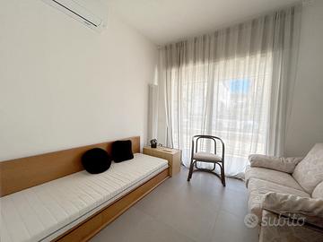 Ampio appartamento in affitto per il MESE di AGOSTO a Riccione, zona Abissinia, con bella zona giorno e cucina a vista, giardino per pranzi all'aperto, zona notte composta da una camera matrimoniale, una camera singola, una camera padronale, due bagni moderni e grande scoperto esterno per il vostro relax all'aperto. Posto Auto, Aria Condizionata.