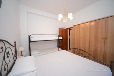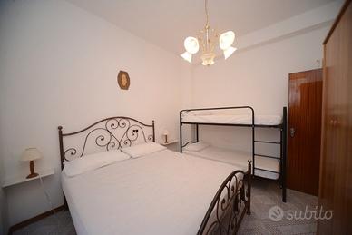 Affittiamo per la stagione estiva un grazioso e luminoso appartamento situato al terzo piano di un condominio con ascensore, in zona tranquilla e ben servita. L'alloggio dispone di una spaziosa zona giorno con tavolo da pranzo, divano e tv, cucinotto completamente attrezzato con forno a microonde. La camera da letto matrimoniale, dotata anche di un pratico letto a castello, offre fino a 4 posti letto. Presenti un bagno moderno con box doccia e un ampio balcone, ideale per rilassarsi all'aperto grazie all'arredo con tavolo e sedie. L'appartamento è fornito di lavatrice e aria condizionata (ubicata nel corridoio), il cui utilizzo prevede un piccolo supplemento. A completare la proprietà, un posto auto condominiale. Soluzione ideale per famiglie o coppie che cercano comfort e funzionalità a pochi minuti dal mare.