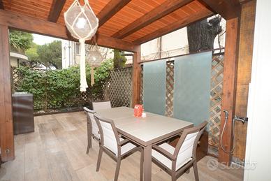 Per soli mesi estivi, Bilocale moderno, elegante e curato, situato nel cuore di Cesenatico, a pochi passi da Piazza Costa e dal mare. L'appartamento si trova al piano terra e dispone di ingresso indipendente e di una corte privata recintata, ideale per chi desidera maggiore privacy. Gli interni sono accoglienti, il soggiorno dispone di cucina attrezzata, divano letto e tavolo da pranzo, il corridoio porta alla camera matrimoniale e al bagno moderno con box doccia. L'appartamento è dotato di aria condizionata (utilizzo facoltativo con supplemento). Animali di piccola taglia ammessi.