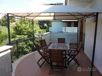 Lido di Fondi a 350 metri dal mare e 5 km da Sperlonga e da Terracina cedesi per i mesi estivi appartamento (5 posti letto) al primo piano in villa bifamiliare composto da: n.2 camere matrimoniali con terzo letto, cucina, sala da pranzo, bagno, ampio terrazzo di 25 mq con gazebo, parcheggio privato.