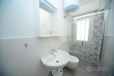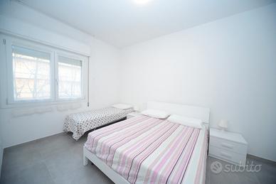 Affittiamo appartamento di recente ristrutturazione in condominio servito da ascensore. L'ingresso è direttamente nella luminosa zona giorno con divano letto matrimoniale, angolo cottura con lavastoviglie (no forno) e fornetto elettrico. Nella zona notte una camera da letto matrimoniale e lettino singolo. Bagno con box doccia (no bidet). Dotato di spazioso balcone attrezzato, lavatrice e aria condizionata (il cui utilizzo facoltativo prevede un supplemento di prezzo).