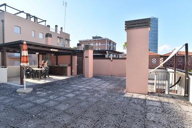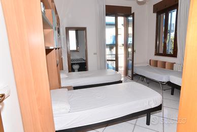 Per soli mesi estivi, In ottima posizione, centralissima e a due passi dal mare e dalla passeggiata del Viale Carducci affittiamo bellissimo appartamento al primo piano a scale in piccola palazzina composto da soggiorno con divano letto matrimoniale e tv, cucinotto separato, disimpegno con mobile lavanderia e lavatrice, camera da letto tripla (con l'aggiunta di una rete pieghevole) con balcone e bagno privato con box doccia, camera da letto matrimoniale con terrazzo e bagno privato con vasca, terzo bagno con doccia a parete. L'appartamento è dotato di aria climatizzata, il cui utilizzo -facoltativo- prevede un piccolo supplemento di prezzo e pale a soffitto. Al piano superiore splendido terrazzo con vista mare di circa 100 mq attrezzato con tavolo, sedie, ombrellone e zona cucina. Accesso diretto dal balcone del soggiorno o dalla scalinata condominiale con proprio cancello privato. Al piano interrato comoda cantina ad uso esclusivo completa di lavatoio. Al piano terra posto auto privato assegnato. Valore EP: 421,64