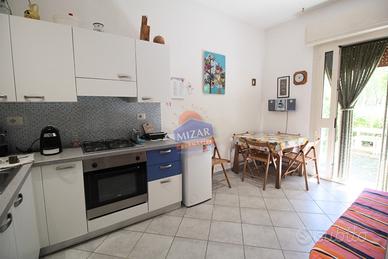 Al piano terra di una piccola palazzina a soli 50 metri dal mare affittiamo grazioso appartamento bilocale composto da sala da pranzo e angolo cottura, camera da letto matrimoniale con letto a castello, bagno. L'appartamento dispone di lavatrice, tv, aria condizionata (consumi a parte) e giardino con posto auto privato.