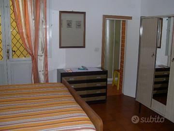 Appartamento situato a piano terra di un'abitazione singola in una zona poco trafficata con strada a senso unico, a 300 mt. dal mare, sono gestiti e curati direttamente dai proprietari quindi senza costi di agenzia. Si trova sul retro della casa con ingresso indipendente e con un ampio terrazzo dotato di tavoli, sedie e ombrellone per poter mangiare all'aperto. Può ospitare fino ad un max di 7 posti letto, è composto da: cucina attrezzata, due camere matrimoniali una con l'aggiunta di un letto singolo e l'altra con l'aggiunta di un letto a castello e da due bagni; sono inoltre presente una lavatrice, inferiate alle aperture e la possibilità di accedere ad internet. Compreso nel prezzo è a disposizione anche un box auto.