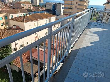 Disponibile per giugno e luglio bellissimo attico a 100 metri dal mare vicino al centro. L'appartamento è composto da due camere matrimoniali, due bagni accessoriati e finestrati, un grande salone e un bellissimo terrazzo abitabile e vista mare. La spiaggia è facilmente raggiungibile sia a piedi che in bici e nei pressi dell'edificio si trova un supermercato e diversi negozi di generi alimentari e non.