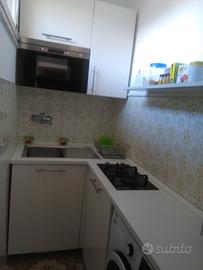 soggiorno con angolo cottura, bagno con doccia, camera da letto matrimoniale e camera bambini con letto singolo e a castello (possibilità di usufruire con costo a parte di condizionatore). Max 5 persone.