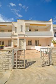 L'appartamento, situato al primo piano, ha una superficie di circa 90 mq e si trova a 40 m reali dalla spiaggia di sabbia. Fa parte di una struttura composta da quattro appartamenti gemelli, due al piano terra e due al primo piano. L'appartamento dispone di un'area di pertinenza antistante, che può essere utilizzata anche come posto auto. Ha inoltre un accesso comodo tramite scala coperta, una veranda retrostante e una antistante con vista mare, attrezzata con tavolo e sedie, dove è possibile pranzare e cenare all'aperto. L'appartamento è composto internamente da: un ampio soggiorno con angolo cottura, una camera matrimoniale, un'altra camera con due letti piani (con possibilità secondo matrimoniale), una terza camera con altri due letti piani (con possibilità terzo matrimoniale), un disimpegno, un ripostiglio, un bagno con doccia, un'altra doccia esterna, TV satellitare, zanzariere in ogni stanza, lavatrice, climatizzatore e ventilatore. A 40 m si trova la spiaggia dorata di Torre Pali, salvo modifiche apportate da cambiamenti climatici, mentre a pochi passi - 50 m - si trovano tutti i servizi di prima necessità: market, bar, ristoranti, gelateria, edicola, tabacchi e giochi per bambini. A 100 metri circa si trova il porticciolo di Torre Pali, dove è possibile noleggiare imbarcazioni per escursioni alle grotte di Santa Maria di Leuca. Fuori dal centro abitato, a poco più di 1 km, si trovano le stupende spiagge attrezzate, tra cui le "Maldive del Salento"