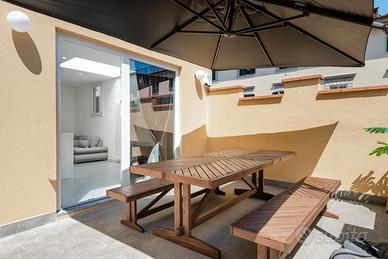 Particolarmente suggestiva è l'ampia terrazza esterna, dotata di barbecue, zona pranzo all'aperto e una splendida vista panoramica sulla città: lo scenario ideale per assaporare una squisita bistecca alla fiorentina!