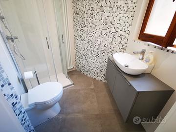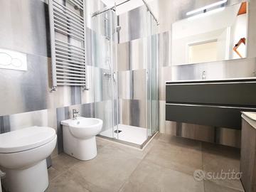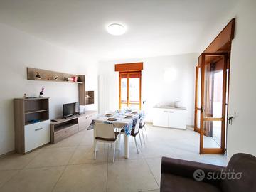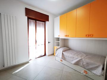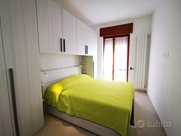 L'appartamento dispone di due camere da letto, doppi servizi e balcone.