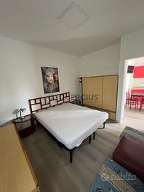 Soggiorno con angolo cottura dotato di terrazzino, arredato con cucina e piano ad induzione, camera da letto matrimoniale e cameretta. Arredato e climatizzato.