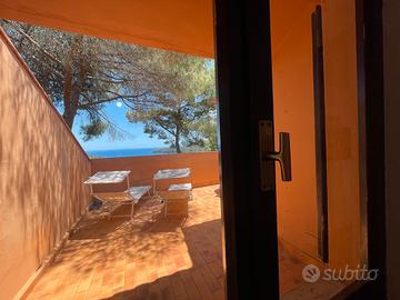 L'appartamento bilocale dispone di una zona giorno con angolo cottura attrezzato, frigorifero e TV LCD, camera matrimoniale e disimpegno con letto doppio a scomparsa. Ingresso indipendente e bagno con box doccia e asciugacapelli; dispone di terrazza a tasca con vista sul golfo di Mola e con mobili da esterno per poter mangiar fuori. L'appartamento dispone di parcheggio, aria condizionata e Wi-Fi.