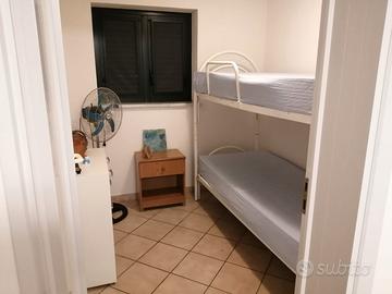 L'appartamento è ben attrezzato per garantire un soggiorno confortevole, con due camere da letto, un bagno con doccia, una cucina attrezzata e un soggiorno con tavolo, sedie e TV. L'aria condizionata sarà un'ottima alleata per godersi un soggiorno fresco anche durante le giornate più calde.
