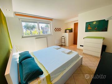 Affitto per brevi periodi appartamento ristrutturato di 110 mq al piano terra di villetta bifamiliare, con ingresso indipendente e ampio giardino privato.