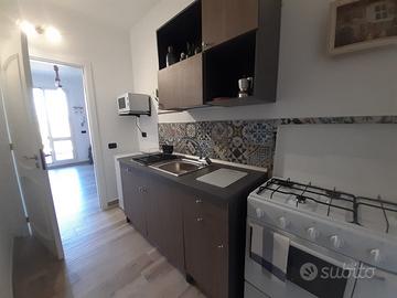 L'appartamento di circa 30 metri quadrati è adatto ad una coppia anche con un figlio ( due figli minori di anni 6 con brandina supplementare gratuita) . C'è l'aria condizionata, ferro da stiro, cucina, lavatrice, doccia.
