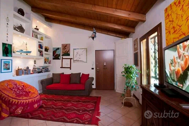 Accogliente appartamento di circa 80 mq, in ex fienile ristrutturato, situato in zona verde a San Lazzaro di Savena e vicino all'ospedale Bellaria (3Km), autostrada e tangenziale.