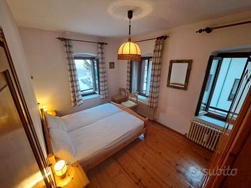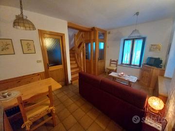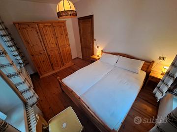 15 km from Cortina d'Ampezzo, for the olimpa splendid and unique view of Mount Antelao is available for monthly/biweekly rental in this apartment in the center of Vodo di Cadore. The apartment comprises two bedrooms with a double bed and two single beds upstairs, a living area with a TV, a kitchenette on the ground floor, and a bathroom with a shower and washing machine. Furnished in a mountain-style, it can accommodate up to four people, with the possibility of two more guests on the sofa bed at the ground floor. Shared garden and parking within the garden, as well as ample public parking next to the house. No pets. 2 floors apt.
