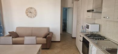 Appartamento vista mare disponibile Maggio e Ottobre. Composto da camera da letto con letto matrimoniale e letto singolo. Bagno finestrato con doccia, antibagno con un secondo wc + lavatrice. Soggiorno cucina con divano letto matrimoniale, per un totale di 5 posti letto. Ampia veranda attrezzata, vista mare, inoltre solarium sopra l'appartamento. Aria condizionata, forno microonde, forno elettrico. Viene richiesta cauzione. Il consumo di energia elettrica viene pagata in base ai consumi.