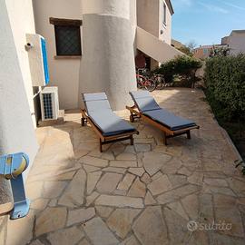 Al centro del paese di Porto San Paolo e vicinissimo a tutti i servizi, comodo appartamento al piano terra con veranda frontale attrezzata per pranzi e cene all'aperto e veranda posteriore, con zona divani. La zona giorno è composta da un salone con angolo cottura, penisola e divano letto. La zona notte da 2 camere matrimoniali e 2 bagni. Aria condizionata, wi-fi e ampia disponibilità di parcheggio nella zona. Altre disponibilità in zona: Porto San Paolo, Costa Corallina, Cala Girgolu, Punta Molara, San Teodoro.