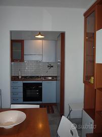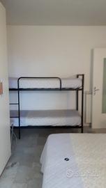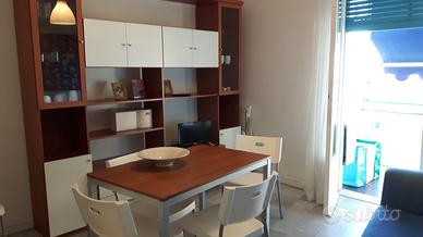bilocale, 5° piano con ascensore, 6 posti letto, ingresso, camera con letto matrimoniale e letto a castello, soggiorno con divano letto matrimoniale, cucinino, bagno, balcone vista mare, tv, lavatrice.
