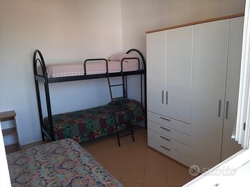 E' composto da soggiorno/pranzo con zona cottura, una camera con letto matrimoniale + letto a castello, una camera matrimoniale, una camera con 2 letti, bagno con box doccia, terrazzo abitabile attrezzato con vista mare, corte condominiale con posto auto.