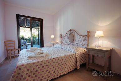 A soli 200m dalla via principale di Procchio e a 600m dalla spiaggia di sabbia fine. L'appartamento quadrilocale è dotato di ingresso indipendente e ampia terrazza coperta, attrezzata per poter mangiare fuori. Aria condizionata, TV Sat e forno. Parcheggio auto scoperto per almeno due auto all'interno del piccolo complesso. E' composto da soggiorno con angolo cottura, tre camere (una camera matrimoniale, una camera doppia con finestra alta e un'altra camera matrimoniale), servizio con box doccia. Animali ammessi di piccola/media taglia su richiesta con supplemento di 50€. Biancheria da letto e da bagno da portare o noleggiabile a 20€ a persona a cambio (su richiesta).